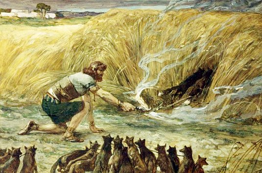 Bunları değil sade bir köye, bütün Filistlilerin kasabalarında saldı - zaten sıcak havada 2-3 çift çakal bir köyün tarlalarını bütün yakabilir