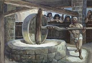Nerede Şimşon önce o yolsuz kadınla günaha düştü, nerede büyük yiğitlik yaptı – aynı yerde onu şimdi en fazla aşağılıyorlar – bir öküz gibi işletiriyorlar onu