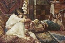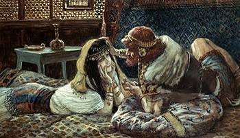 Şimşon uyurken Delila onun başındaki yedi örgüyü