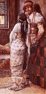 “Filist beyleri kadına gelip, "Şimşon'un üstün gücünün kaynağı nedir, onu kandırıp öğrenmeye bak" dediler, "Böylece belki onu bağlar, etkisiz hale getirip yenebiliriz. Her birimiz sana bin yüzer parça gümüş vereceğiz."”