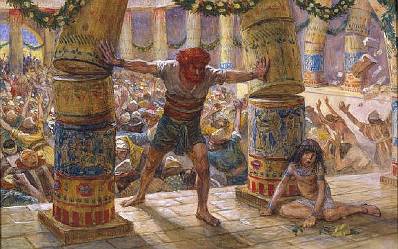 28 Şimşon RAB'be yakarmaya başladı: "Ey Egemen RAB, lütfen beni anımsa. Ey Tanrı, bir kez daha beni güçlendir; Filistliler'den bir vuruşta iki gözümün öcünü alayım." 29 Sonra tapınağın damını taşıyan iki ana sütunun ortasında durup sağ eliyle birini, sol eliyle ötekini kavradı. 30 "Filistliler'le birlikte öleyim" diyerek bütün gücüyle sütunlara yüklendi. Tapınak Filist beylerinin ve bütün içindekilerin üzerine çöktü. Böylece Şimşon ölürken, yaşamı boyunca öldürdüğünden daha çok insan öldürdü.”